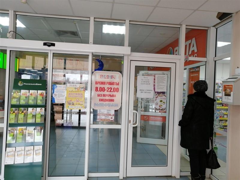 На первом этаже торгового центра на площади 750 кв. м расположены: продуктовый супермаркет торговой сети РАДНА, отделение банка Россельхозбанк, аптека Вита, платежные терминалы и банкоматы.