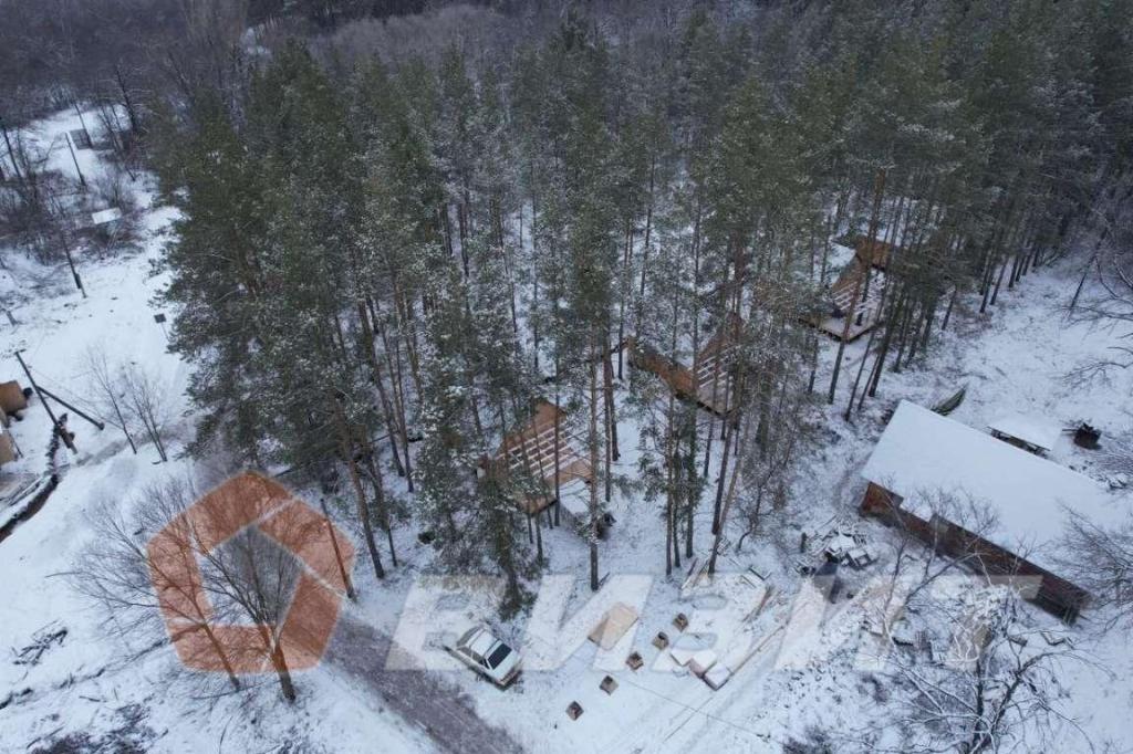 На территории расположено 12 новых щитовых домов, разной степени готовности, предназначенных для проживания от 1 до 6 гостей.