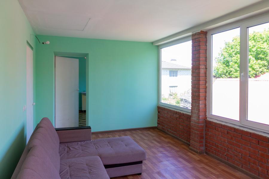 На первом этаже три комнаты, просторный санузел. На втором этаже 4 комнаты при желании две комнаты можно объединить, поскольку стена между ними из гипсо/картона, просторный санузел и большая веранда, которую вы можете застеклить.