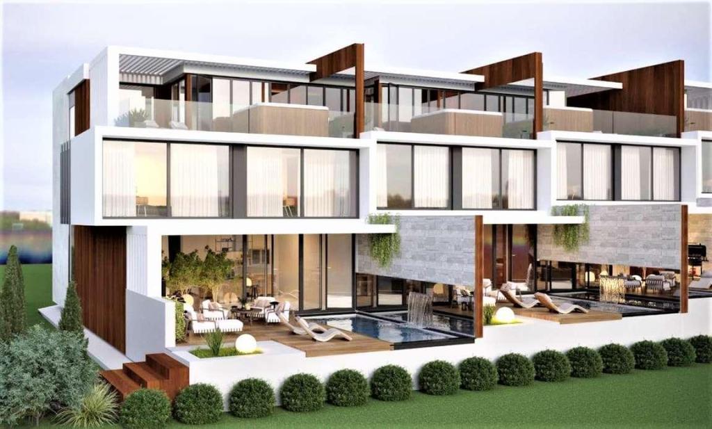- на первом этаже зона с камином, с возможностью установки панорамного лифта,зона кухни, гостевая с выходом на двор, где расположен небольшой сад, пергола, бассейн, зона отдыха.