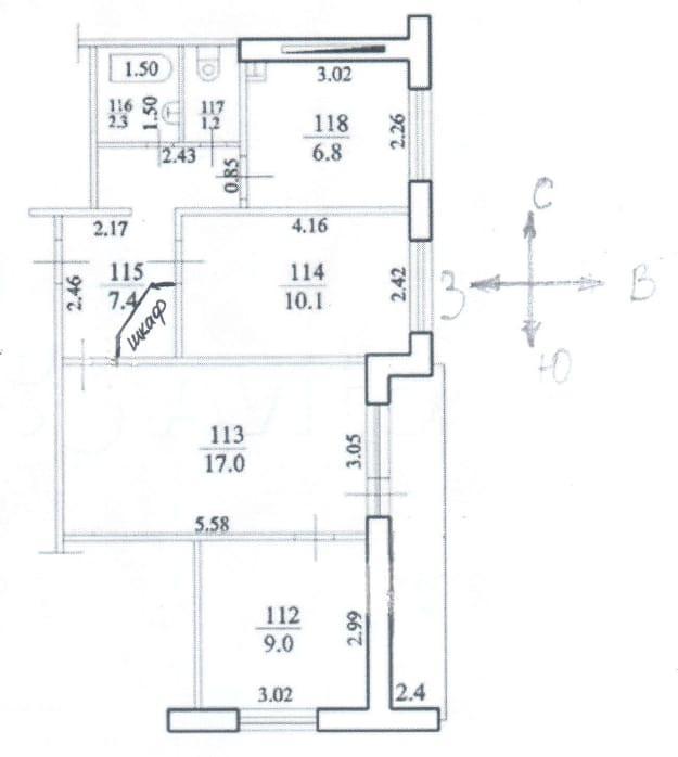 Продается 3-комн. квартира, Ст. Разина пр-т 27, 56/39/7 м2 за 4750000руб, Документы готовы, Железная дверь, Встроенная кухня, Евро окна, Кондиционер, Счетчики, Шкаф-купе, обмен подобран