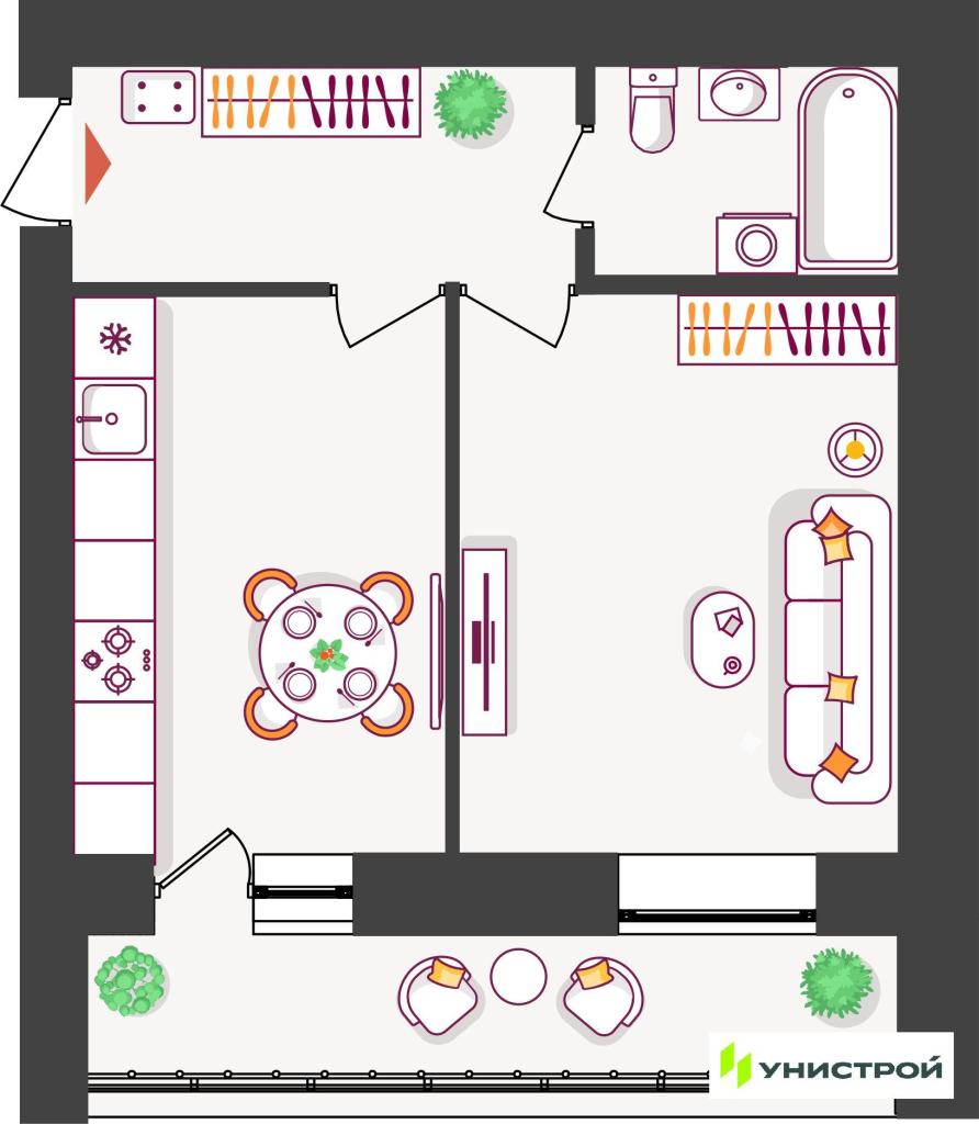 - Квартиры от 37,27 кв.м с современными планировками