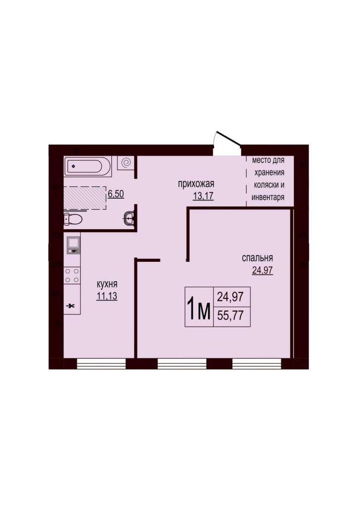 Жилая площадь - 24,97 кв.м.