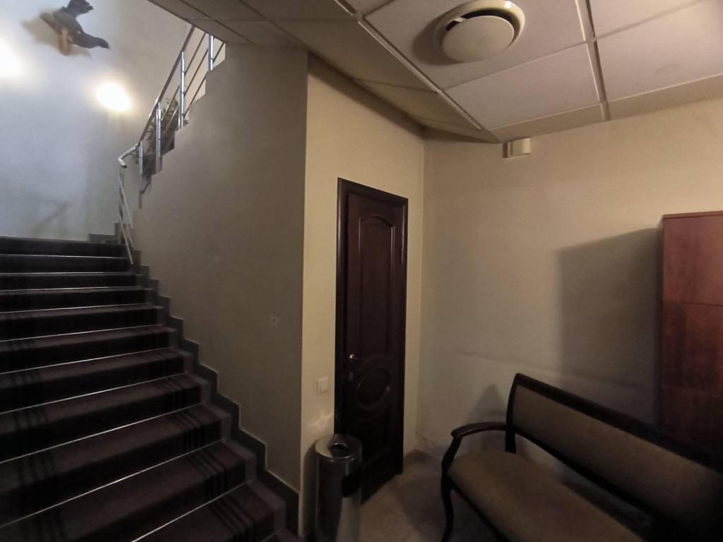 Отдельный вход - парадная лестница, комната охраны на 1 этаже с окном в сторону входной группы.