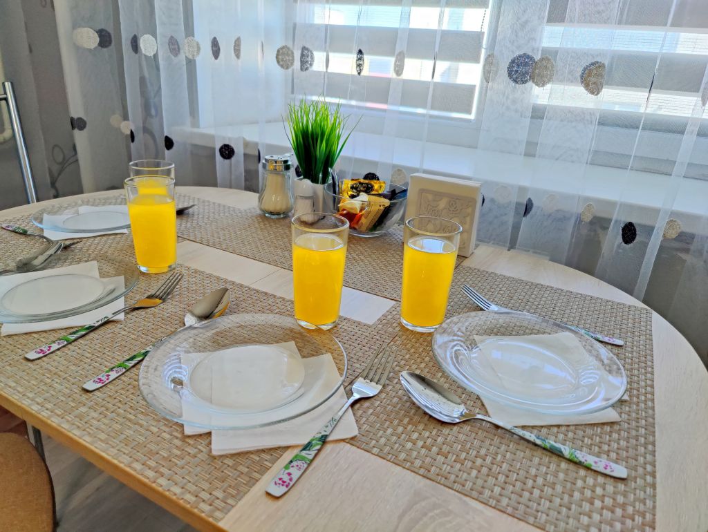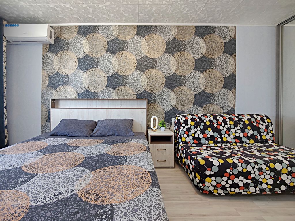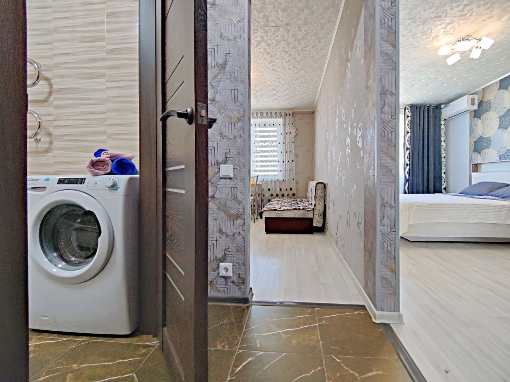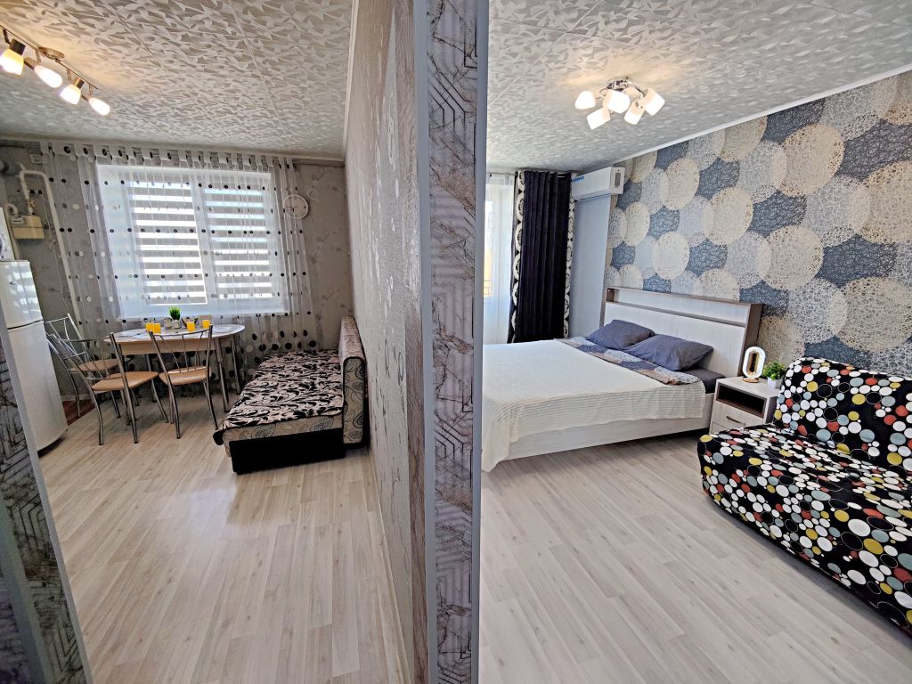 ☀️ Апартаменты полностью оборудованы, есть все необходимое: ️Кровать с комфортным ортопедическим матрасом, ️-удобный раскладной диван, шторы блэкаут, бесплатный Wi-fi, кабельное и смарт ТВ,вся необходимая посуда, чай, сахар, соль, перец, масло. Шампунь, гель для душа, мыло. Бытовая техника: кондиционер, водонагреватель, стиральная машинка, микроволновка, плита с духовкой, эл.чайник, фен, гладильная доска, сушилка, утюг, небольшой балкон.
