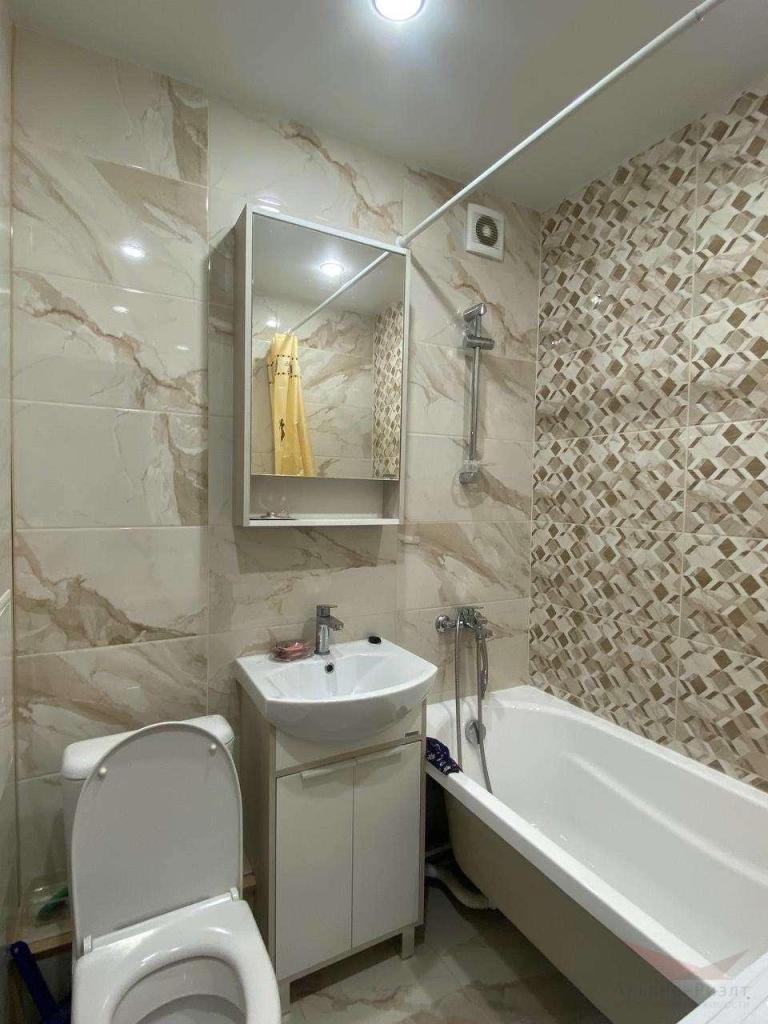 Сдается уютная однокомнатная квартира с мебелью и техникой. Есть все необходимое для жизни — диван, полностью оборудованная ванная комната, шкаф, холодильник.